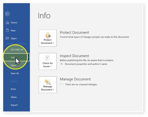 1. Click ‘Info’
