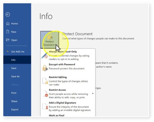 2. Click ‘Protect Document’
